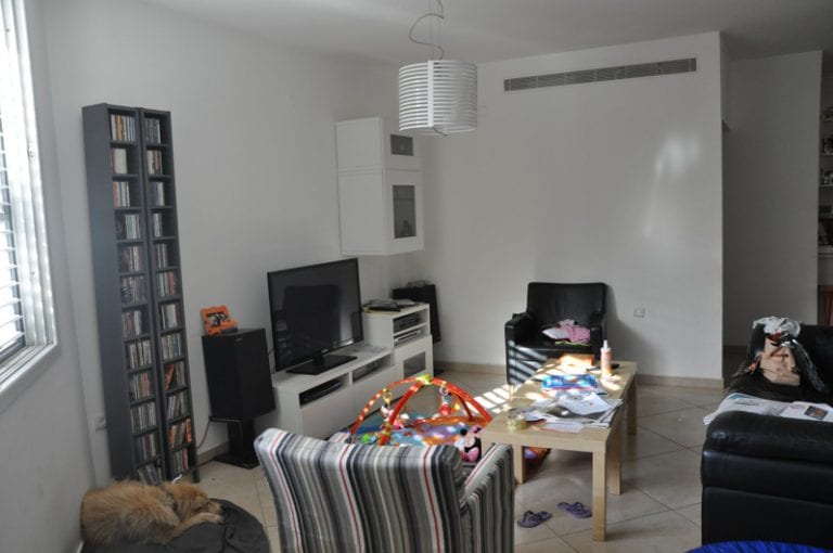 אחרי דירה עם אתגר של מבנה סלון לא סימטרי. העמדת הריהוט הקיימת כללה ספה מרכזית עם גב הפונה לכניסה לבית , חלל אחד שאינו מסודר ויוצר "אי-שקט" אצל דיירי הבית ואורחים שמגיעים.